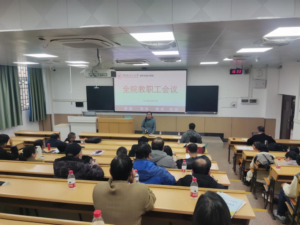 12月19日下午,学院在屏风9107召开全体教职工会议。学院领导班子成员及全体教职工参加会议,会议由蒋远营院长主持。