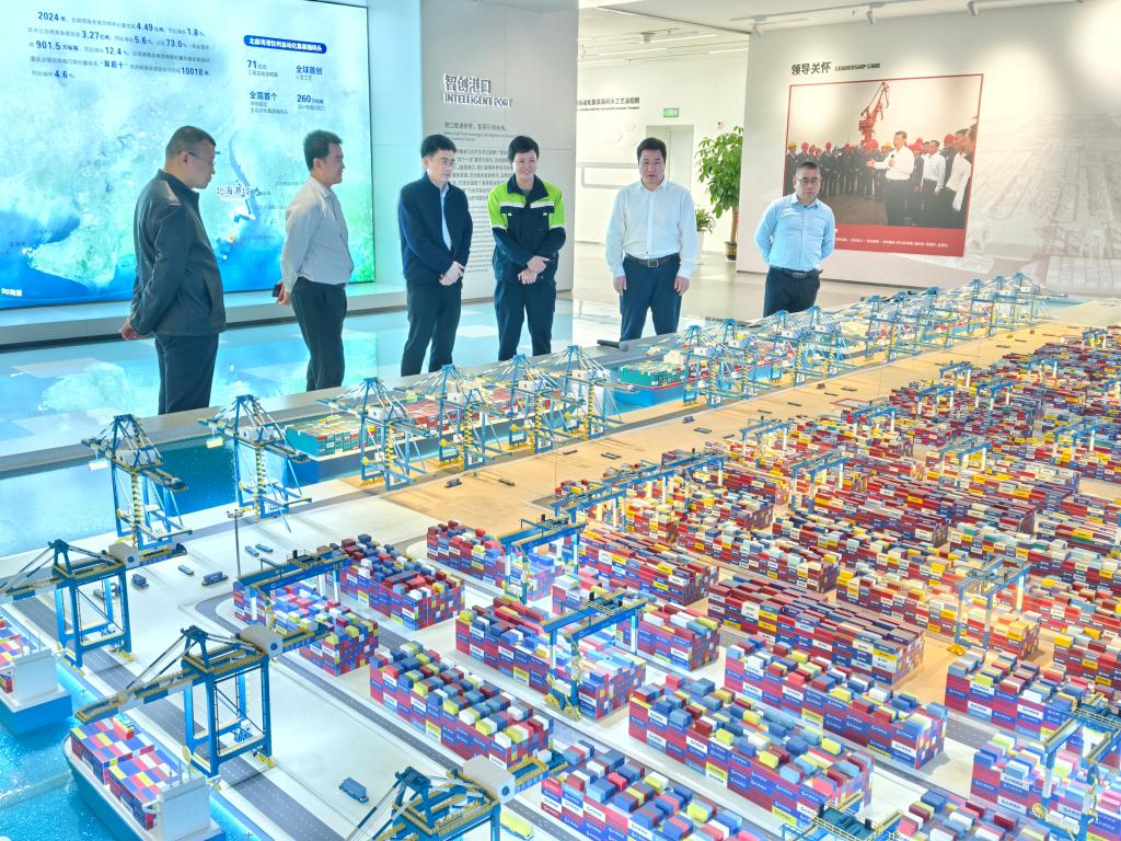 王磊一行先后考察走访了中国—马来西亚钦州产业园区管理委员会、中马产业园区开发有限公司展厅及创新合作中心、北部湾港智慧港口创新中心、北部湾港钦州自动化集装箱码头、广西自贸区睿显科技有限公司等地,深入园区企业、技术研发中心和生产一线,详细了解园区发展规划、产业布局、企业运营状况及人才需求痛点,与各用人单位负责人围绕校企合作、人才培养、产教融合、就业输送等议题展开深度交流。