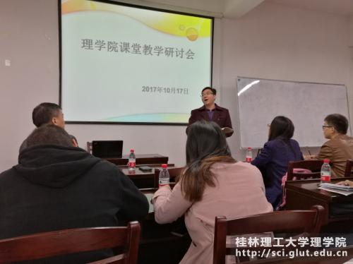 首先,全体参加人员在雁山校区06409教室观摩了全区教学比赛一等奖获得者夏雄平老师的优质示范课,听课的过程中,老师们聚精会神,边看边作听课笔记。随后,全体参加人员移步到雁山校区07122会议室进行了课堂教学研讨。老师们积极发言,肖剑荣院长对夏老师的讲课内容、教学设计进行了点评;唐国强副院长从教师的讲台仪表、内容的处理和板书的设计等进行了评述;其他老师就课堂教学的各方面进行了热烈的讨论。
