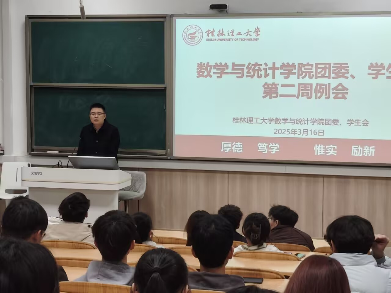 本次例会各部门依次派代表上台传达本周工作任务: 社会实践部:收集并审核了2025年寒假社会实践的论文和证明材料;整理了“返家乡”社会实践和回访母校团队宣传素材;招募志愿者参与大学生创新创业线上视频会议观看;发布了数统学院-第十二届“挑战杯”院级选拔赛(观众);组织毕业生参与西部计划。 科技部:收集并整理第十一届全国青年科普创新实验暨作品大赛广西赛区比赛的作品材料;收集并整理了有意参加第十二届“挑战杯”院赛同学的商业申报书及路演PPT;举办了第十二届“挑战杯”院赛,发布了关于广西公民科学素质知识大赛网络赛的通知。 组织部:2月26收集了学院团支部委员花名册;3月2日收集了2月、3月的团费;3月7日,组织了生活会、团员教育评议、团籍注册的“智慧团建”系统录入工作;3月14日,组织开展各支部团日活动,以及在3月28日提交3月考评。3月14日组织了各团支部开展入团工作3月15日通知了各支部进行团员入党推优工作。网宣部:完成了关于挑战杯院赛的新闻稿、推文、背景PPT以及相关的拍摄工作;同时完成了关于回访母校宣传活动的推文。权益学习部:完成了学生党员答疑活动推文的发布和一站式线下答疑活动的宣传准备。文艺部:撰写了关于2025届毕业晚会的一个策划方案和校园文化艺术节活动申报的策划案。办公室:组织了挑战杯院赛的搬运工作。企划部:完成了学院领导访企拓岗情况的录入工作。