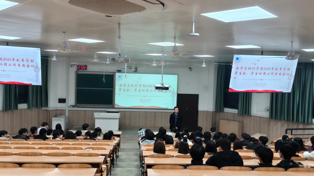 为明确秋季学期学生组织工作方向,强化学生会与学生社团的协同联动,2025年11月2日,数学与统计学院在教学楼会议室召开2025年秋季学期学生会、学生社团工作专题会议。团委书记李艮、团委、学生会全体成员及各社团负责人参会。