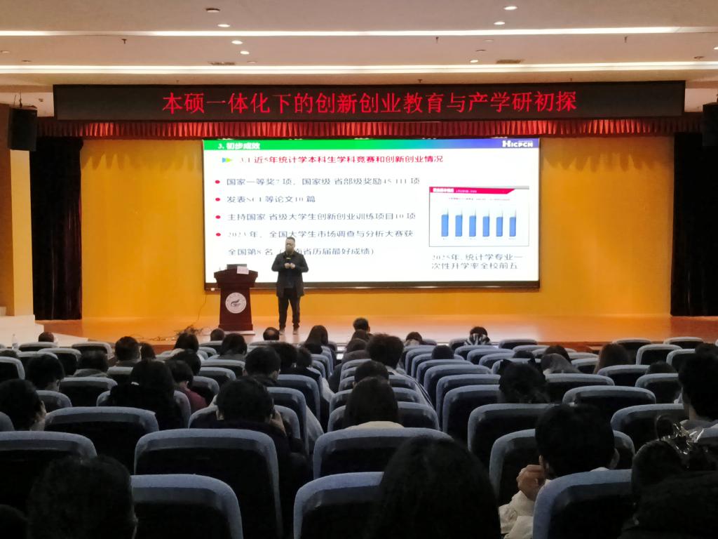 12月16日上午数学与统计学院在雁山校区成功召开“本硕一体化下的创新创业教育与产学研初探”宣讲会。学院副院长唐国强、各教研室主任、教师代表及180名学生参加,会议由副院长王彬主持。